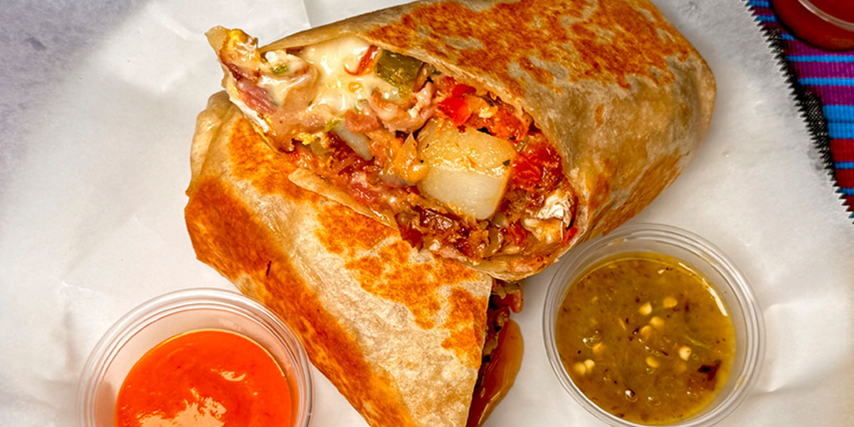 Soft flour tortillas wrap around a mouthwatering medley of seasoned meats, creamy beans, fluffy rice, and crisp veggies, all topped with a dollop of tangy salsa and a sprinkle of cheese. Each bite is a burst of bold flavors and satisfying textures, making every bite a moment to remember.