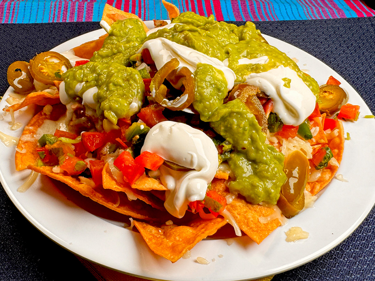 Embark on a crunchy adventure with our made-to-order Nachos. Crisp tortilla chips generously topped with melted cheese, tangy salsa fresca, creamy guacamole, and zesty jalapeños.