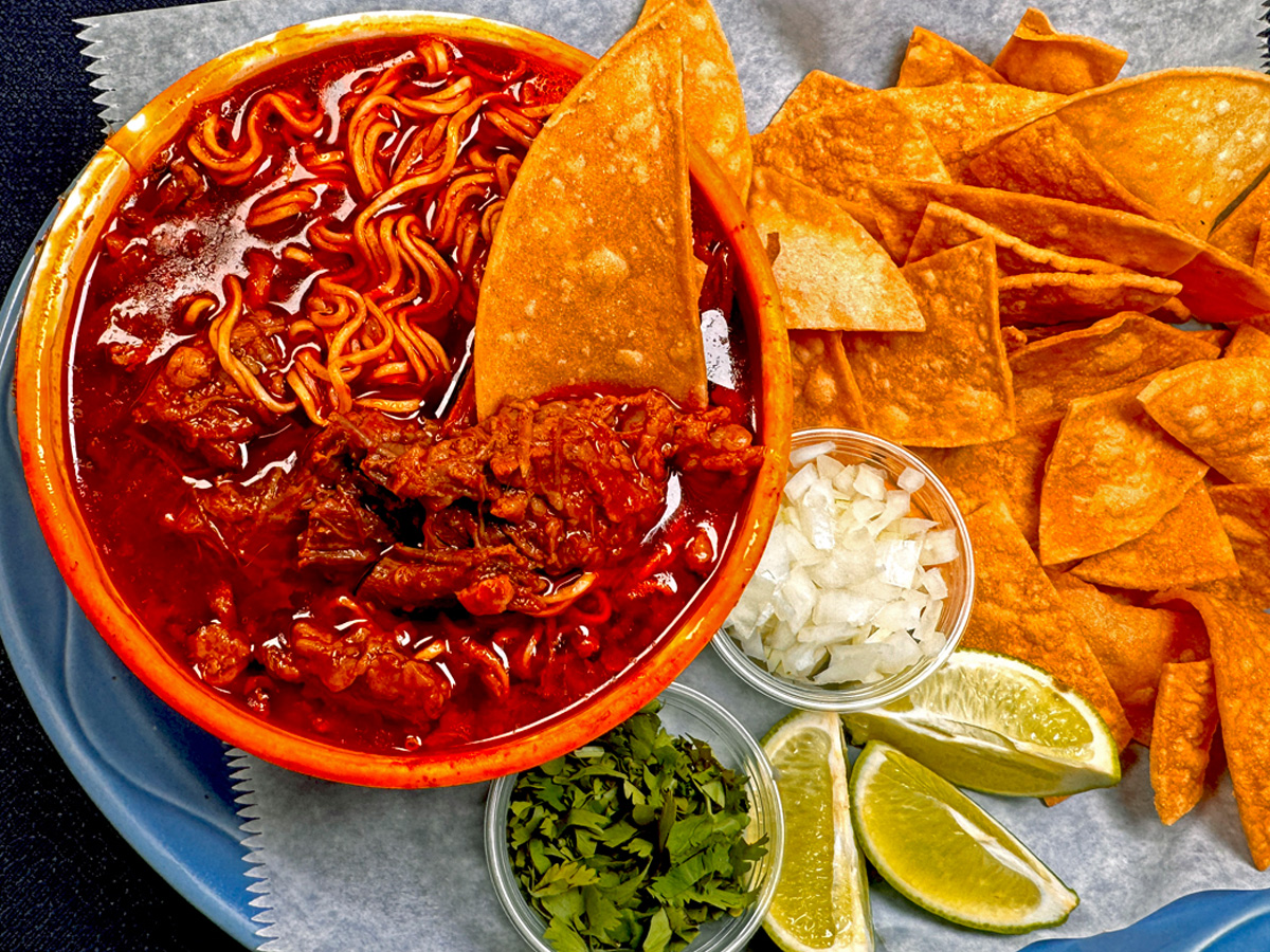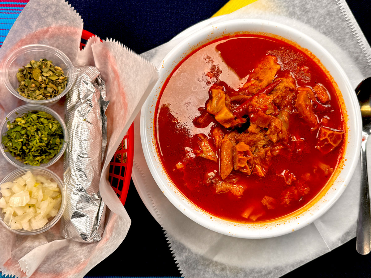 Our savory menudo is a hearty Mexican soup made with tender tripe, hominy, and a rich, flavorful broth, perfectly seasoned with aromatic spices for an authentic and comforting taste.